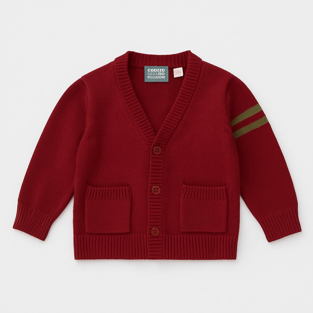 Questo cardigan caldo e accogliente, di un meraviglioso rosso rubino, è perfetto per tenere al caldo i più piccoli nelle fresche giornate autunnali. Realizzato in un morbido tessuto, vanta un design semplice ma elegante con bottoni frontali e tasche laterali pratiche. Le maniche lunghe sono decorate da una striscia a righe beige, aggiungendo un tocco di stile sportivo. Nonostante sia un capo usato, è in ottime condizioni e pronto a diventare il preferito del guardaroba. Perfetto per un look casual e alla moda, questo cardigan è l'ideale per ogni piccola avventuriera!