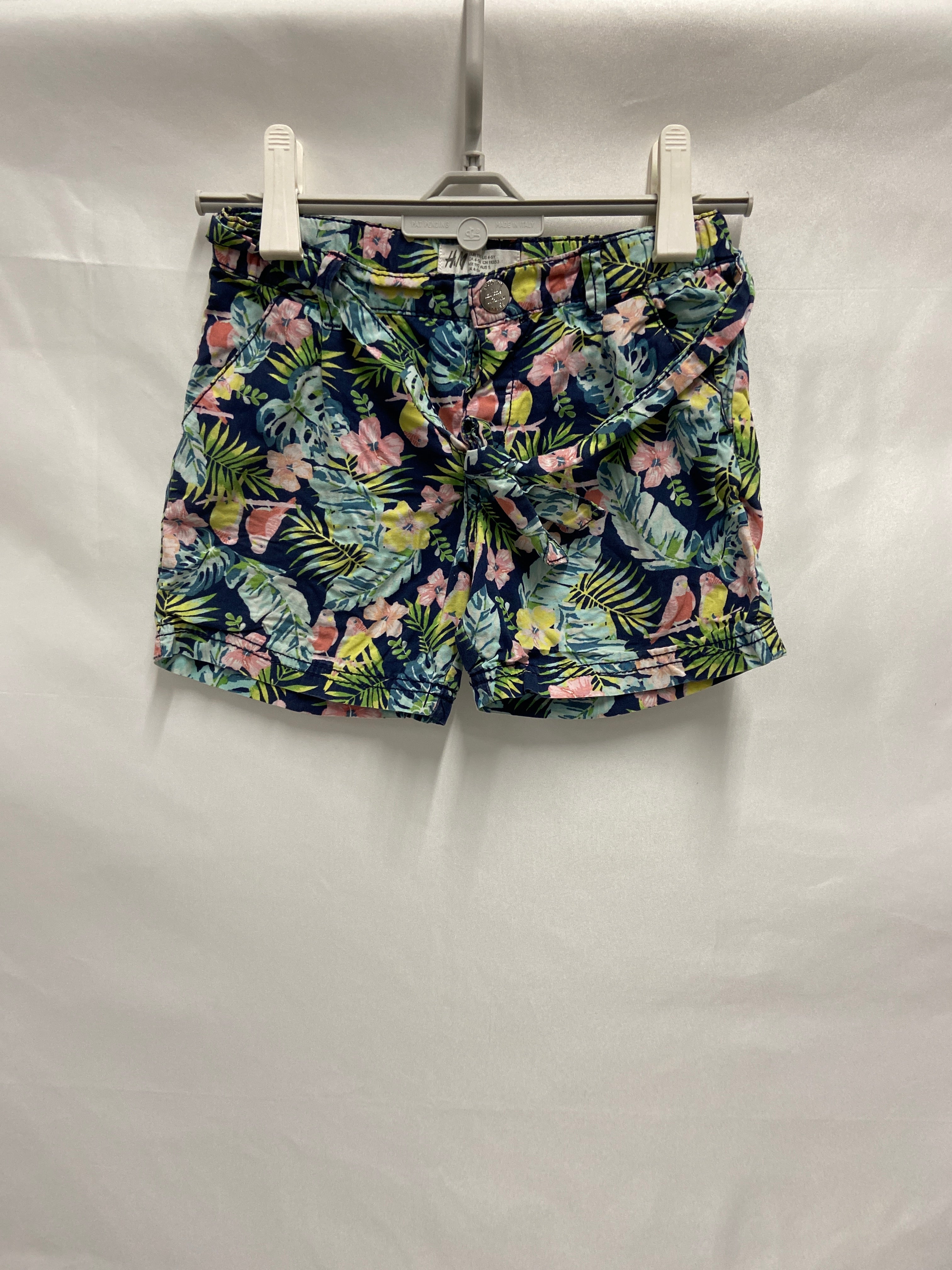 Questi vivaci pantaloni corti a fantasia floreale sono perfetti per le giornate estive! Realizzati con un tessuto leggero e traspirante, presentano un festoso motivo tropicale che farà brillare il guardaroba di ogni bambino. Le tonalità di blu, verde e rosa rendono questi shorts ancora più allegri e divertenti. La vita regolabile assicura una vestibilità comoda, ideale per avventure all'aperto e giochi in spiaggia. Nonostante siano usati, sono in ottime condizioni, pronti a regalare momenti di gioia e stile!