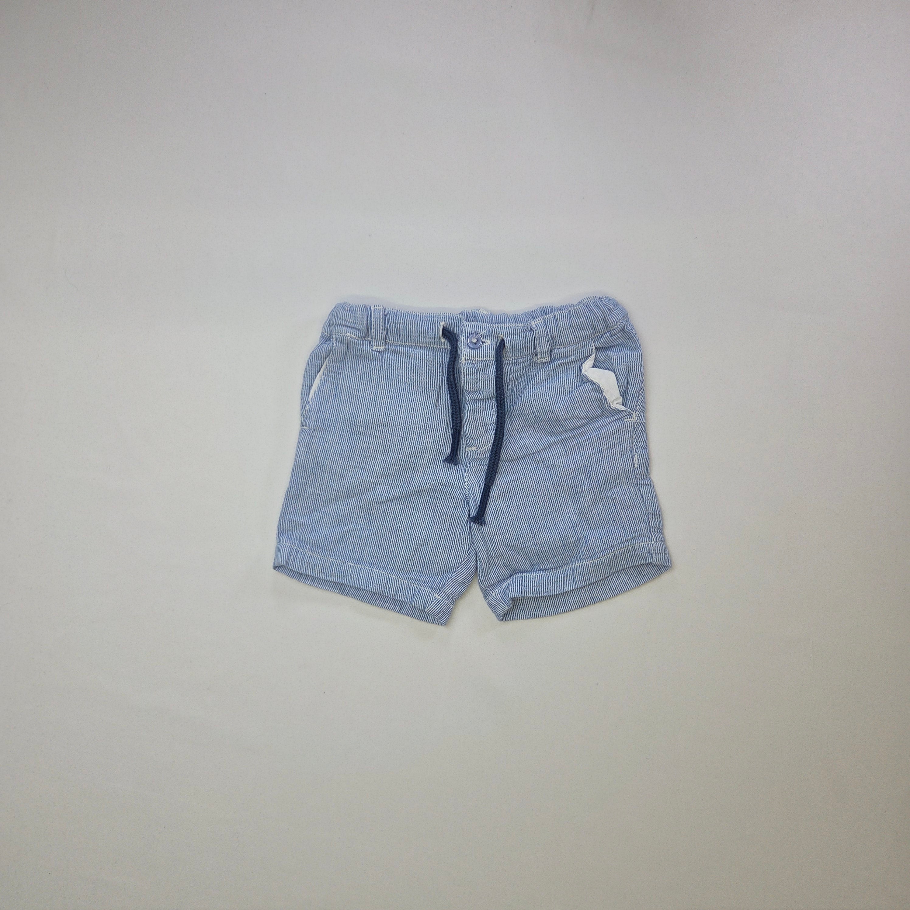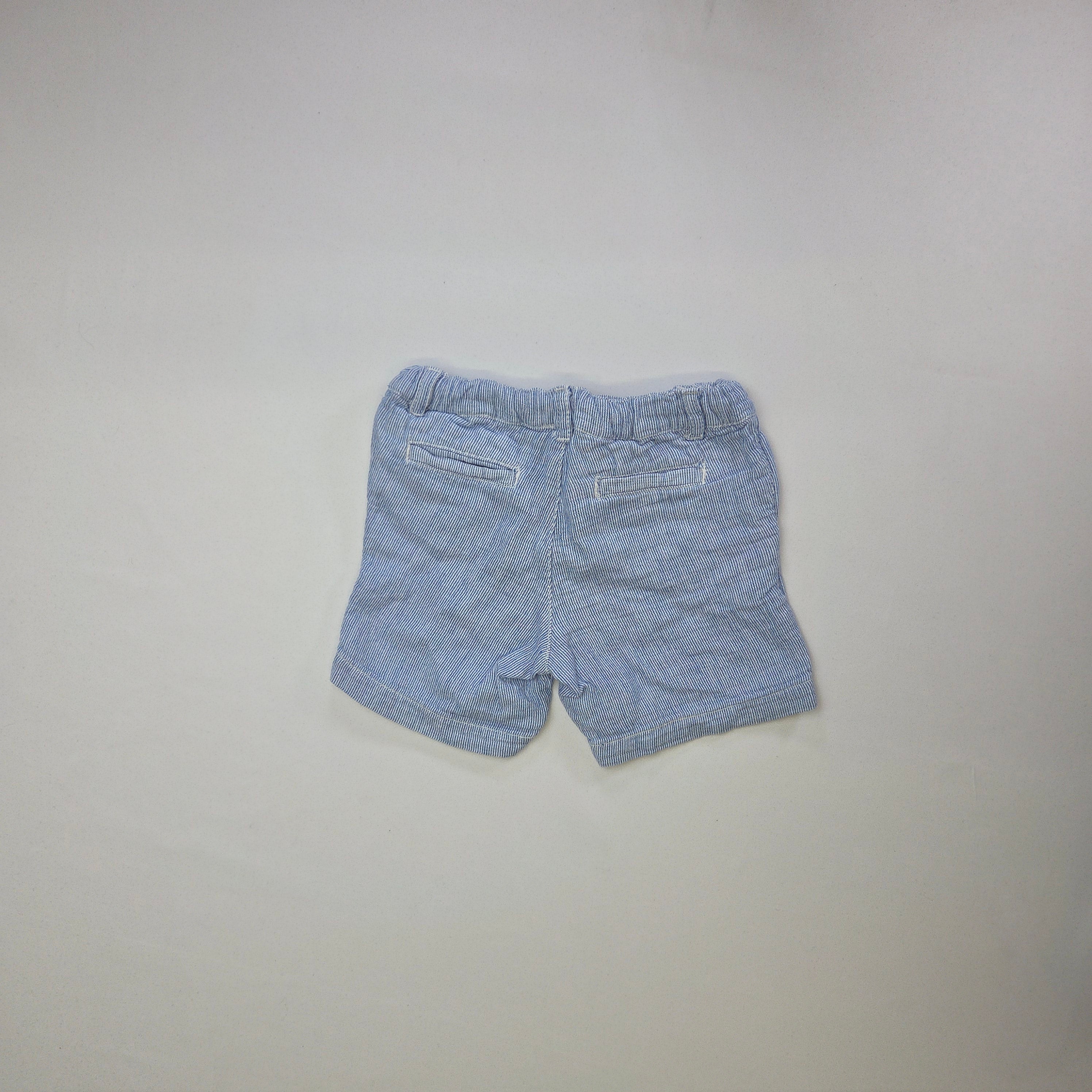 Questi freschi pantaloni corti in lino e cotone sono un'aggiunta ideale al guardaroba estivo del tuo bambino! La deliziosa fantasia a righe blu e bianco evoca l'aria marina, perfetta per giornate di sole al parco o in spiaggia. Presentano una comoda vita regolabile con coulisse, tasche laterali pratiche e un taglio corto che permette libertà di movimento. Nonostante siano usati, si trovano in ottime condizioni, pronti per accompagnare il tuo piccolo in tutte le sue avventure estive! Un capo versatile e chic per ogni piccolo esploratore!