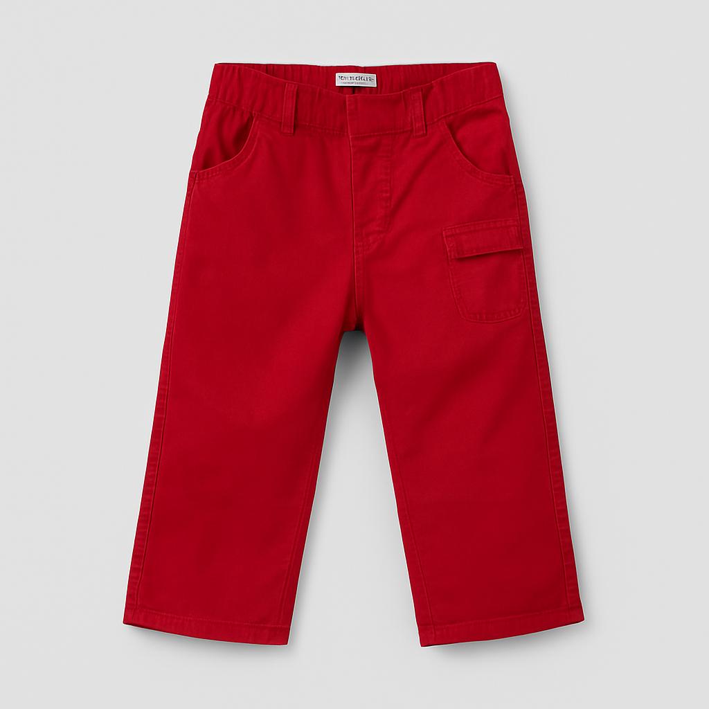Questi vivaci pantaloni rossi sono l'aggiunta perfetta al guardaroba del tuo piccolo! Realizzati in morbido cotone, offrono un comfort assicurato per ogni avventura. Con una pratica vita elasticizzata e tasche utili, sono ideali per i giochi all'aperto o una giornata in famiglia. Nonostante siano un capo usato, si presentano in ottime condizioni, pronti per donare stile e allegria al look del tuo bambino. Perfetti per le piccole esplorazioni quotidiane!
