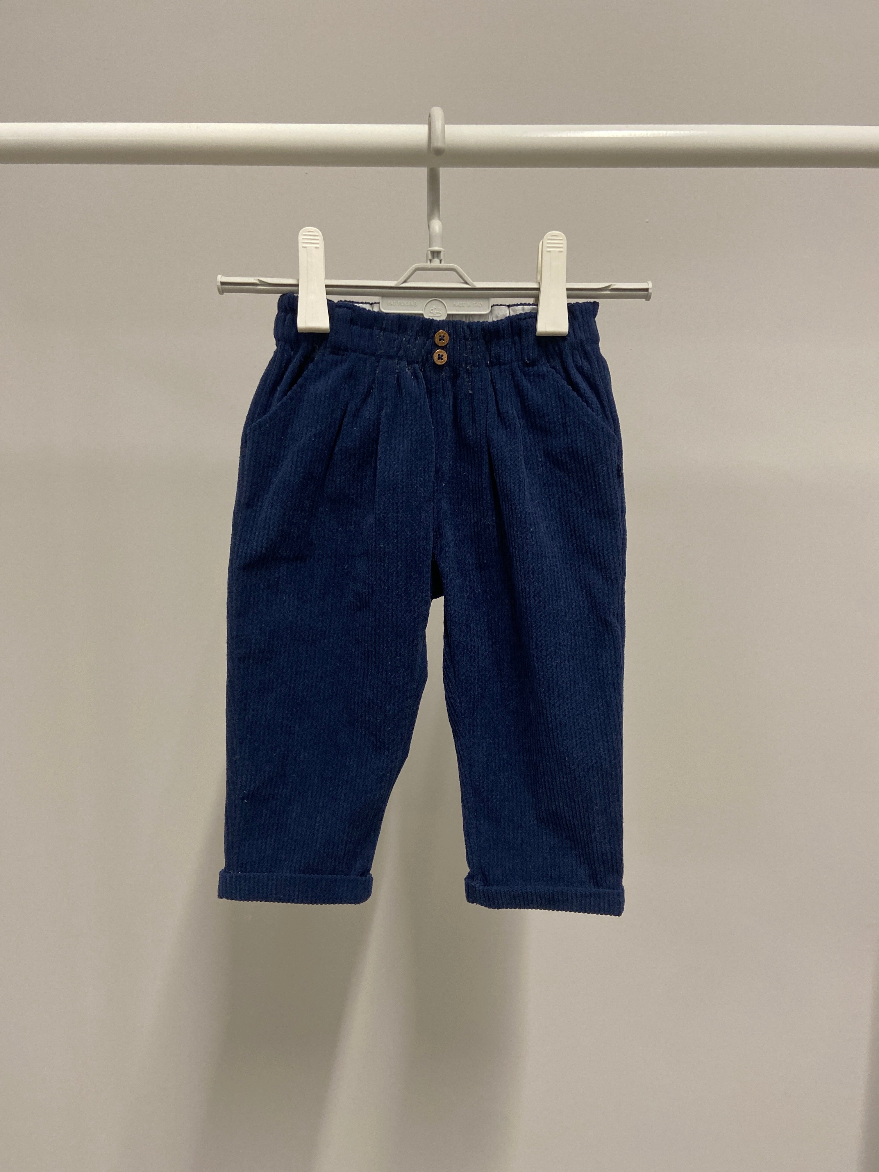 Questi adorabili pantaloni in velluto a coste blu scuro porteranno un tocco di stile al guardaroba del tuo bambino! Realizzati in morbido tessuto, offrono una vestibilità comoda e confortevole per ogni avventura. Il delizioso dettaglio dei bottoni sul davanti aggiunge un tocco di eleganza, mentre il taglio alla caviglia è perfetto per mostrate stivaletti o sneakers. Perfetti per le giornate fresche, si abbinano facilmente a t-shirt colorate o maglioni per un look trendy e pratico. Un capo usato in buone condizioni, ideale per piccoli esploratori sempre in movimento!