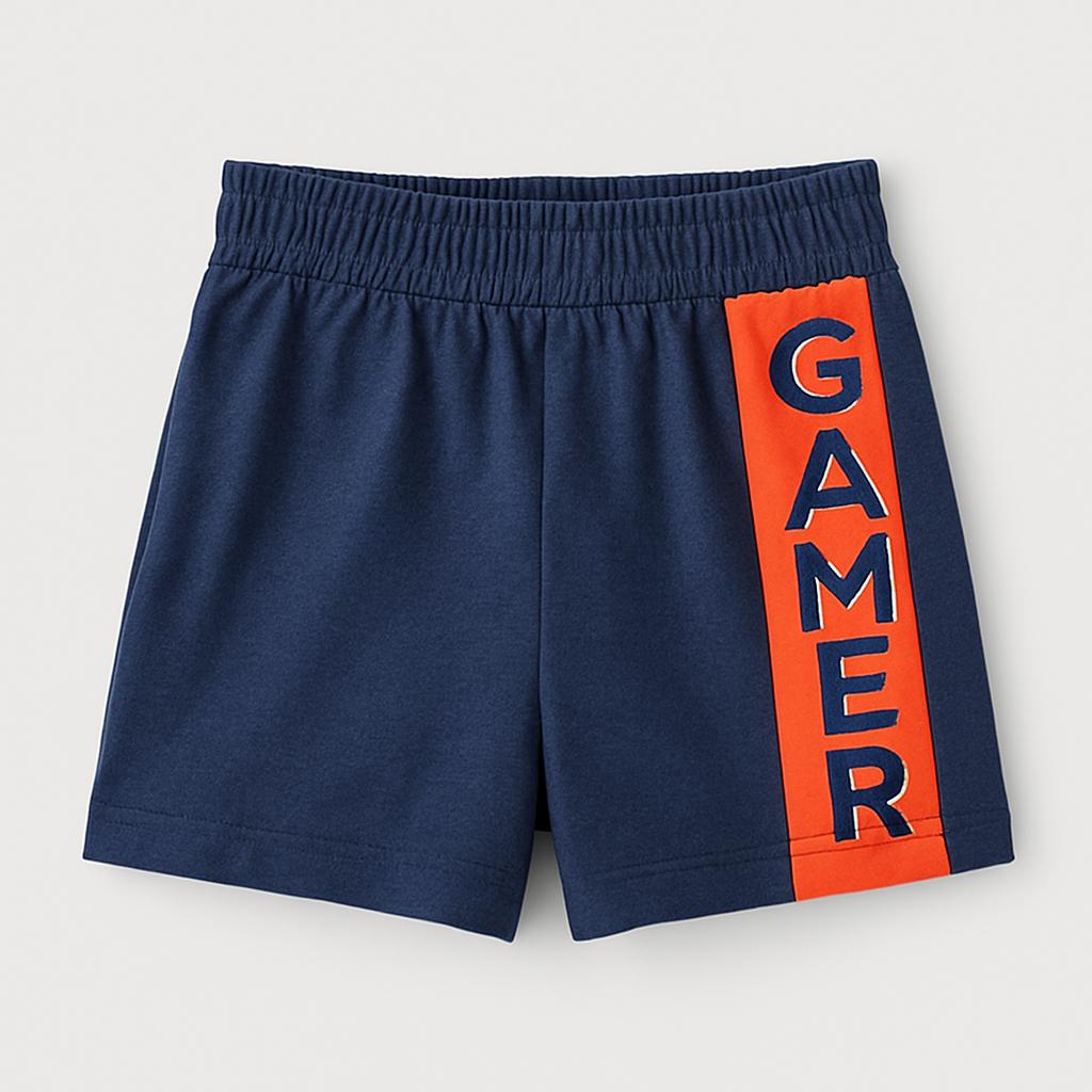 Questi vivaci pantaloni corti blu sono perfetti per i piccoli amanti dei videogiochi! Con un comodo elastico in vita, garantiscono libertà di movimento per ogni avventura. Sul lato, spicca la scritta "GAMER" in un luminoso arancione, decorata con dettagli scintillanti, rendendoli super trendy. Ideali per le giornate estive, per giocare all'aperto o rilassarsi a casa, queste shorts rappresentano un mix perfetto di comfort e stile. Nonostante siano usati, si presentano in ottime condizioni, pronti a diventare il capo preferito del tuo piccolo!