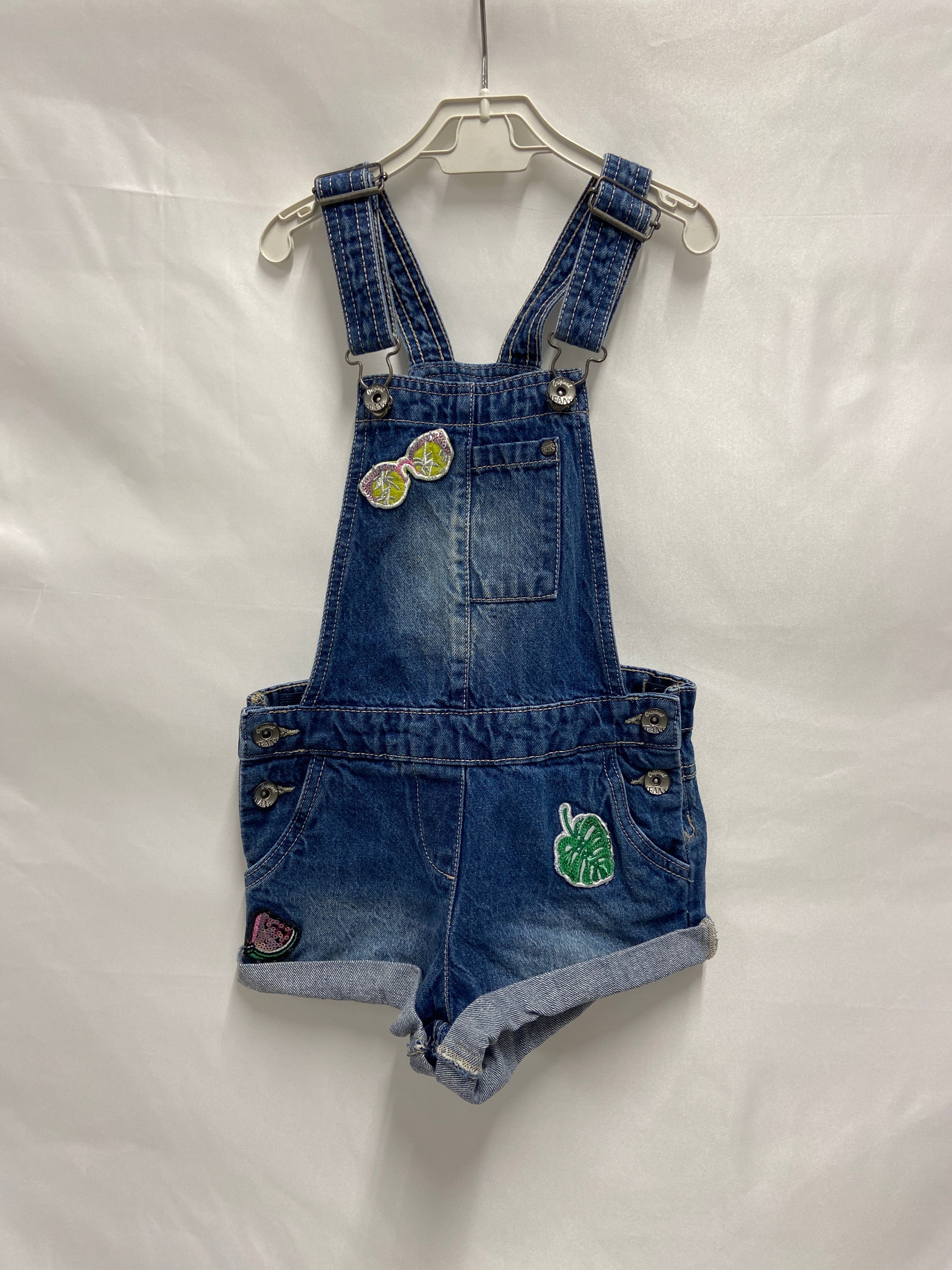 Queste adorabili bretelle in denim sono il capo perfetto per le piccole style icon! Con un fresco taglio a shorts, sono decorate con simpatici patch colorati, tra cui occhiali da sole e piante tropicali. Il morbido denim offre comfort e libertà di movimento, rendendole ideali per avventure all'aperto e giochi estivi. Anche se usate, si presentano in ottime condizioni, pronte per far brillare il guardaroba della tua piccola. Un look irresistibile e pratico per ogni giorno!