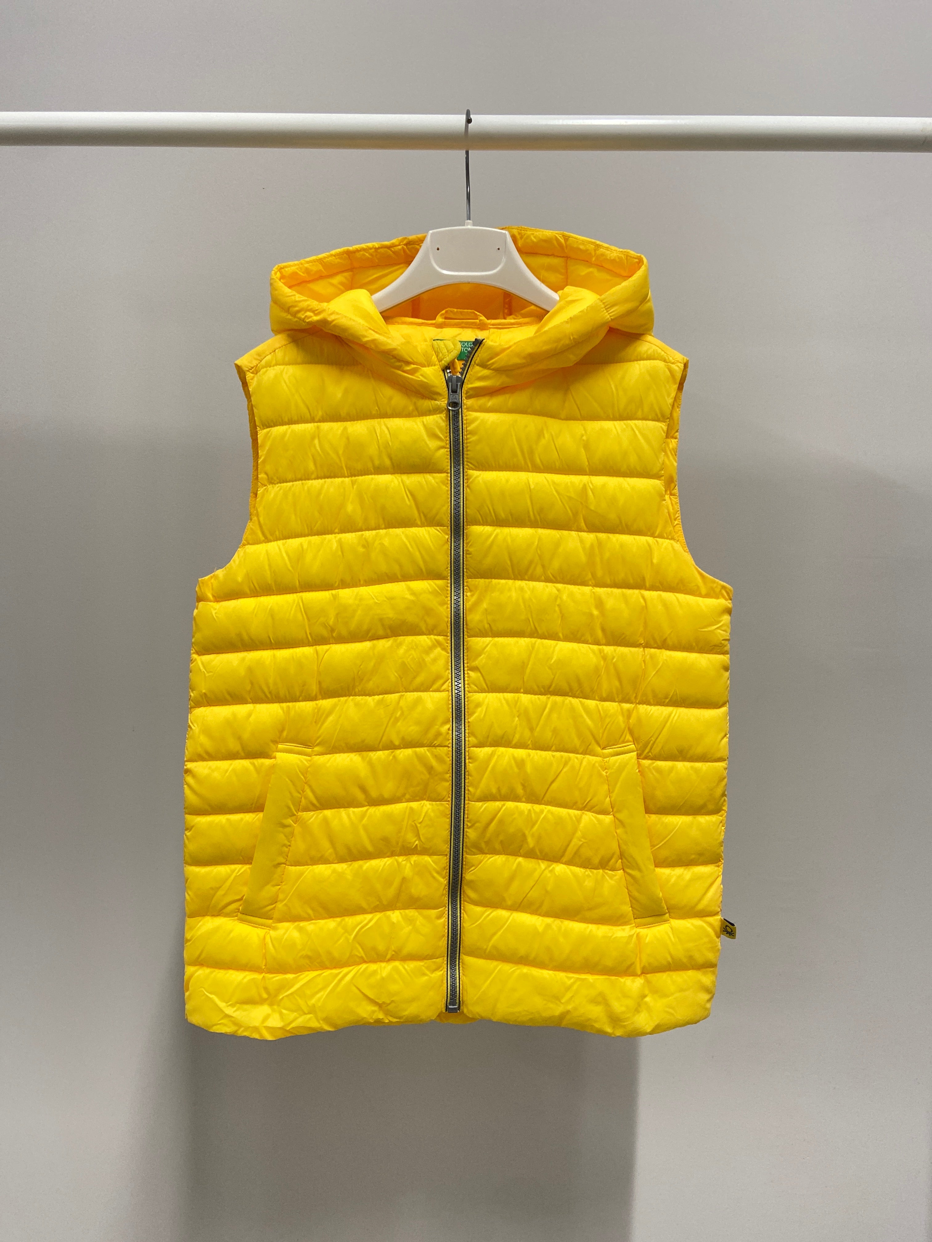Questo vivace gilet imbottito giallo è l'aggiunta perfetta al guardaroba dei più giovani! Grazie al suo tessuto leggero e morbido, offre calore e comodità senza appesantire. Il design senza maniche consente libertà di movimento, ideale per avventure all'aperto o per giochi al parco. La pratica cappuccio offre una protezione extra nei giorni freschi mentre la zip frontale facilita la vestizione. Nonostante sia un capo usato, si presenta in ottime condizioni, perfetto per i piccoli amanti dello stile e dell’energia!