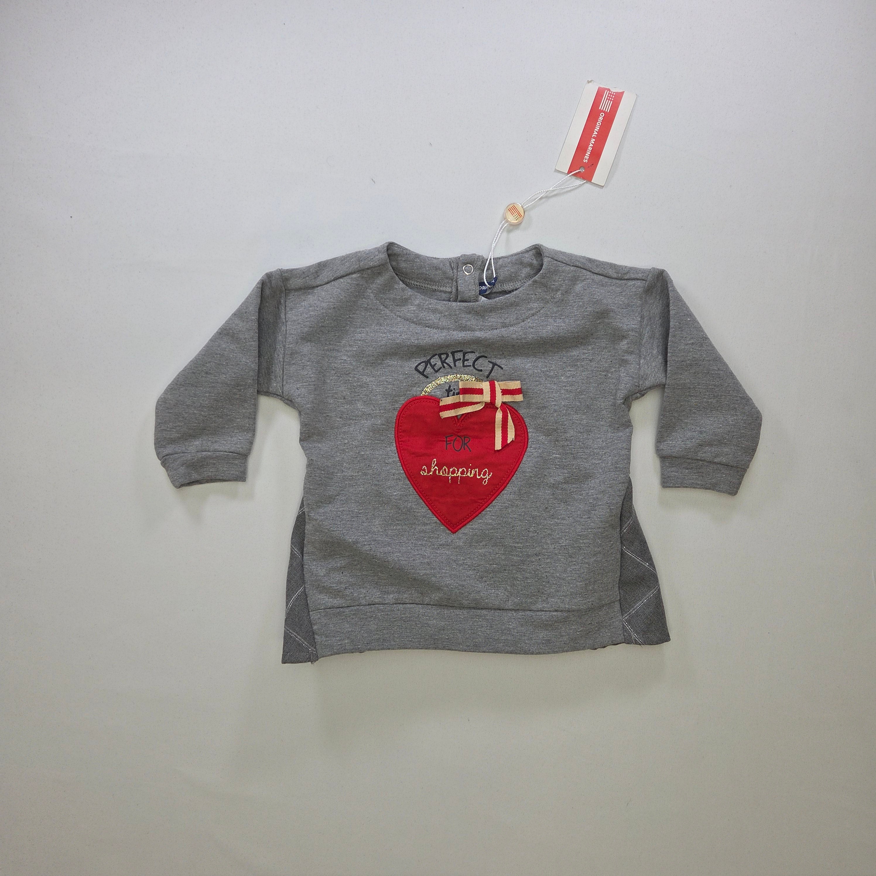 Questa adorabile felpa grigia con maniche lunghe è perfetta per le piccole fashioniste! Realizzata in morbido cotone, offre comfort e calore per le giornate fresche. Sul davanti, un grande cuore rosso è adornato da un grazioso nastro e dalla scritta "Perfect for shopping", aggiungendo un tocco di stile e allegria. Il design moderno e il taglio comodo la rendono ideale per abbinamenti versatili, sia per un look casual che per momenti speciali. Anche se usata, si presenta in ottime condizioni, pronta a fare felice la tua piccola!