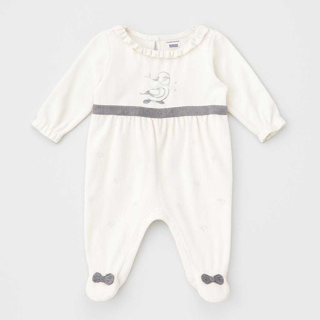 Questo adorabile pagliaccetto bianco è perfetto per il tuo piccolo tesoro! Realizzato in morbido cotone, offre comfort e delicatezza sulla pelle. Decorato con un dolce ricamo di un uccellino e dettagli floreali, aggiunge un tocco di tenerezza a ogni momento. Le maniche lunghe e i piedini chiusi garantiscono calore e protezione durante le giornate più fresche, mentre la fascia in vita in tessuto grigio dona un'elegante finitura. Nonostante sia un capo usato, è in ottime condizioni, pronto per accompagnare il tuo bimbo in avventure indimenticabili! Un must-have per il guardaroba dei più piccoli!