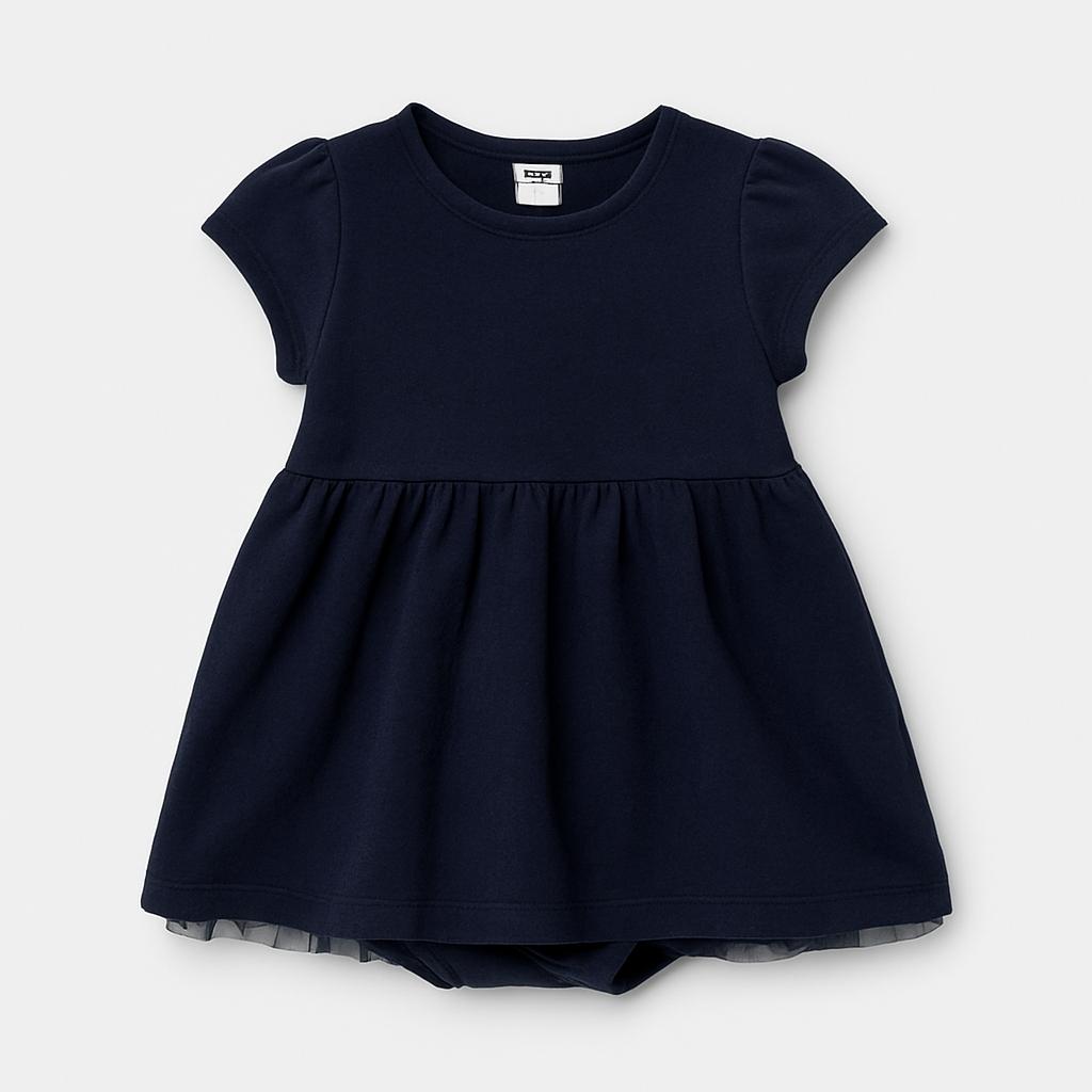 Questa deliziosa vestitino blu notte è perfetto per le piccole principesse! Realizzato in morbido cotone, presenta maniche corte arricciate che donano un tocco di dolcezza. La gonna ampia è ideale per ballare e giocare, rendendo ogni momento speciale. Le cuciture accurate e la qualità del tessuto lo rendono adatto anche ai giochi più avventurosi. Nonostante sia usato, si presenta in ottime condizioni, pronto a far brillare il sorriso della tua bambina! Perfetto per occasioni speciali o per un look quotidiano chic e comodo.