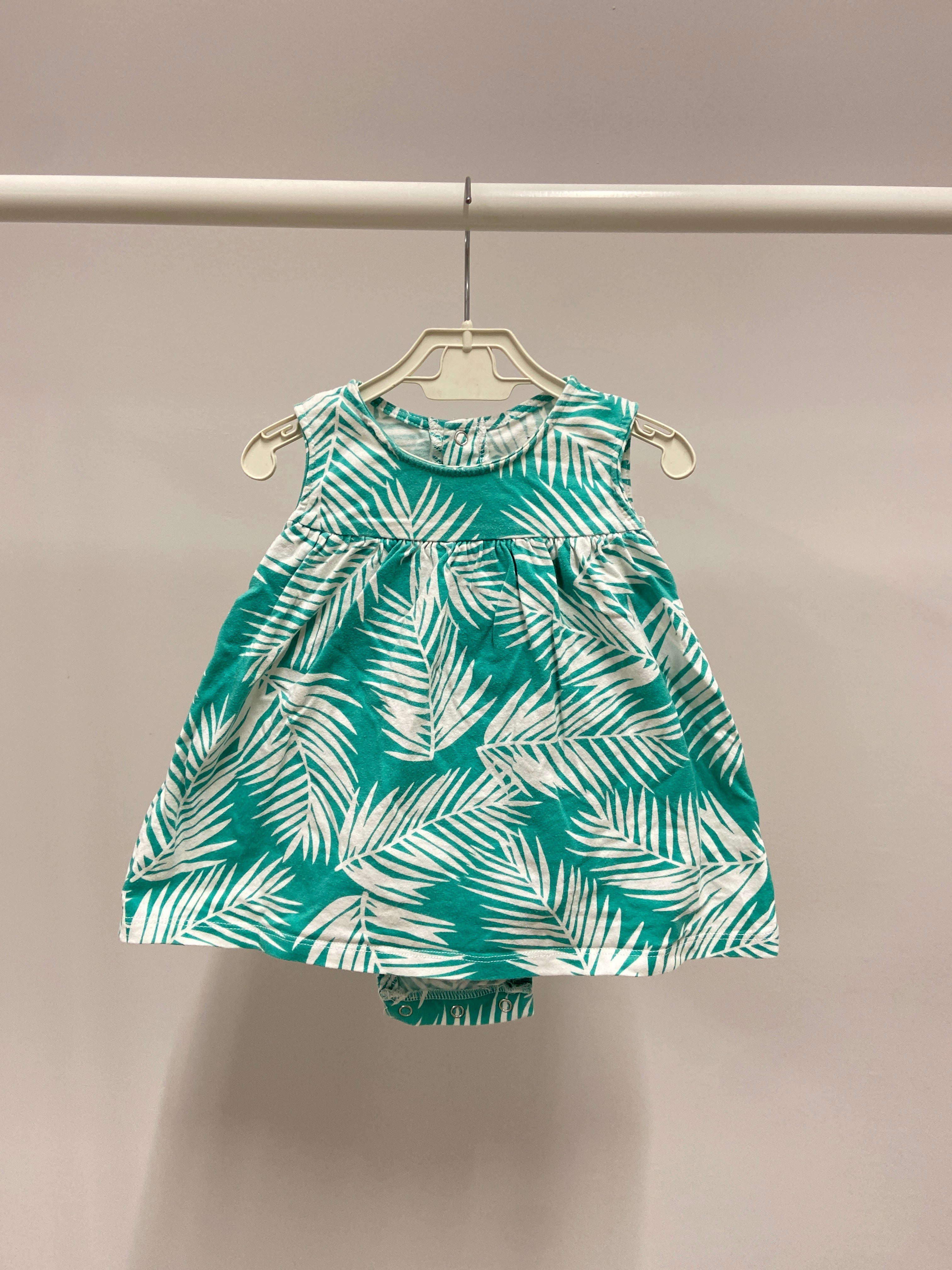 Questo adorabile vestitino estivo è perfetto per la tua piccola esploratrice! Realizzato in fresco cotone, presenta un'incantevole fantasia di foglie verdi su sfondo turchese, che richiama alla mente felici giornate di sole. La gonna ampia permette una grande libertà di movimento, mentre il taglio semplice e le spalline lo rendono facile da indossare. Incluso anche un comodo leggings coordinato per una vestibilità completa. Nonostante sia un capo usato, si presenta in ottime condizioni, pronto per far brillare ogni momento di gioco e avventura!