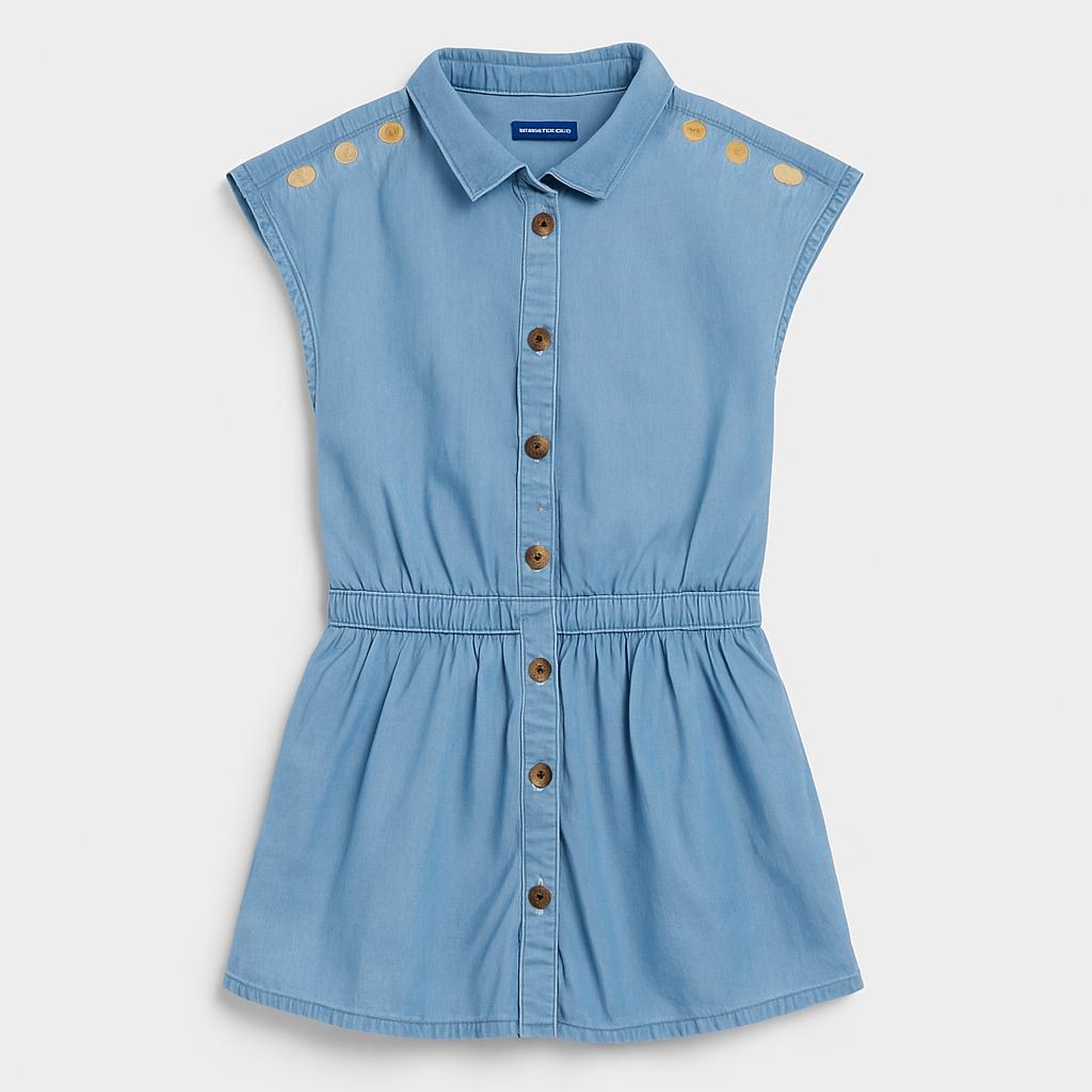 Questo adorabile vestitino in denim azzurro è perfetto per le piccole trendsetter! Con un comodo design a maniche ampie e una vita elasticizzata, offre un look pratico e fresco per ogni occasione. La chiusura a bottoni sul davanti e i dettagli di cucitura conferiscono un tocco di stile unico. Ideale per giochi al parco o per una passeggiata con gli amici, si abbina facilmente a sandali o sneakers. Anche se è un capo usato, si presenta in ottime condizioni, pronto per accompagnare ogni avventura della tua bambina con un tocco di charme!