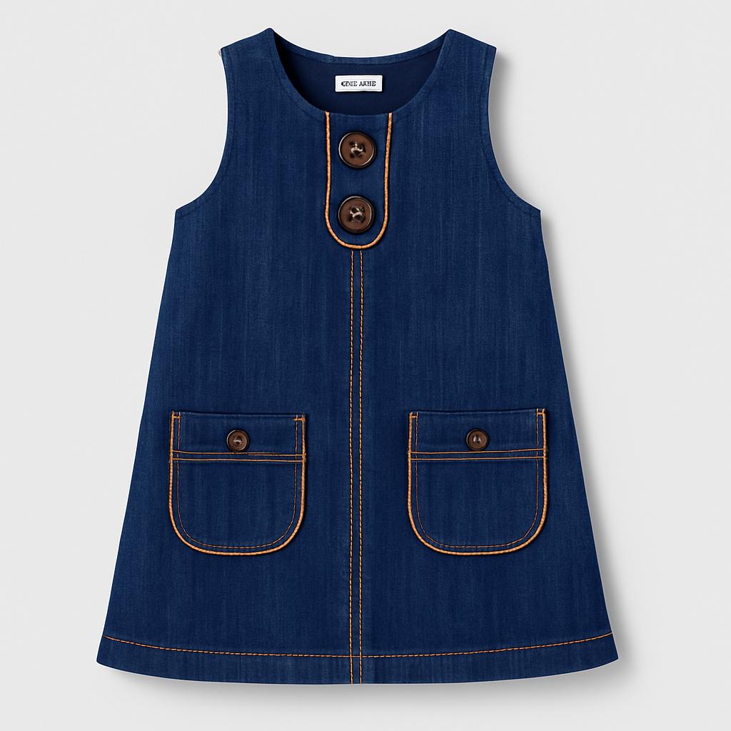 Questo adorabile abitino in denim è un classico senza tempo che non può mancare nel guardaroba della tua piccola! Realizzato in un materiale resistente, è caratterizzato da un elegante colore blu scuro sfumato e da due bottoni decorativi che aggiungono un tocco di charme. Le tasche laterali sono perfette per custodire i piccoli tesori delle avventure quotidiane.