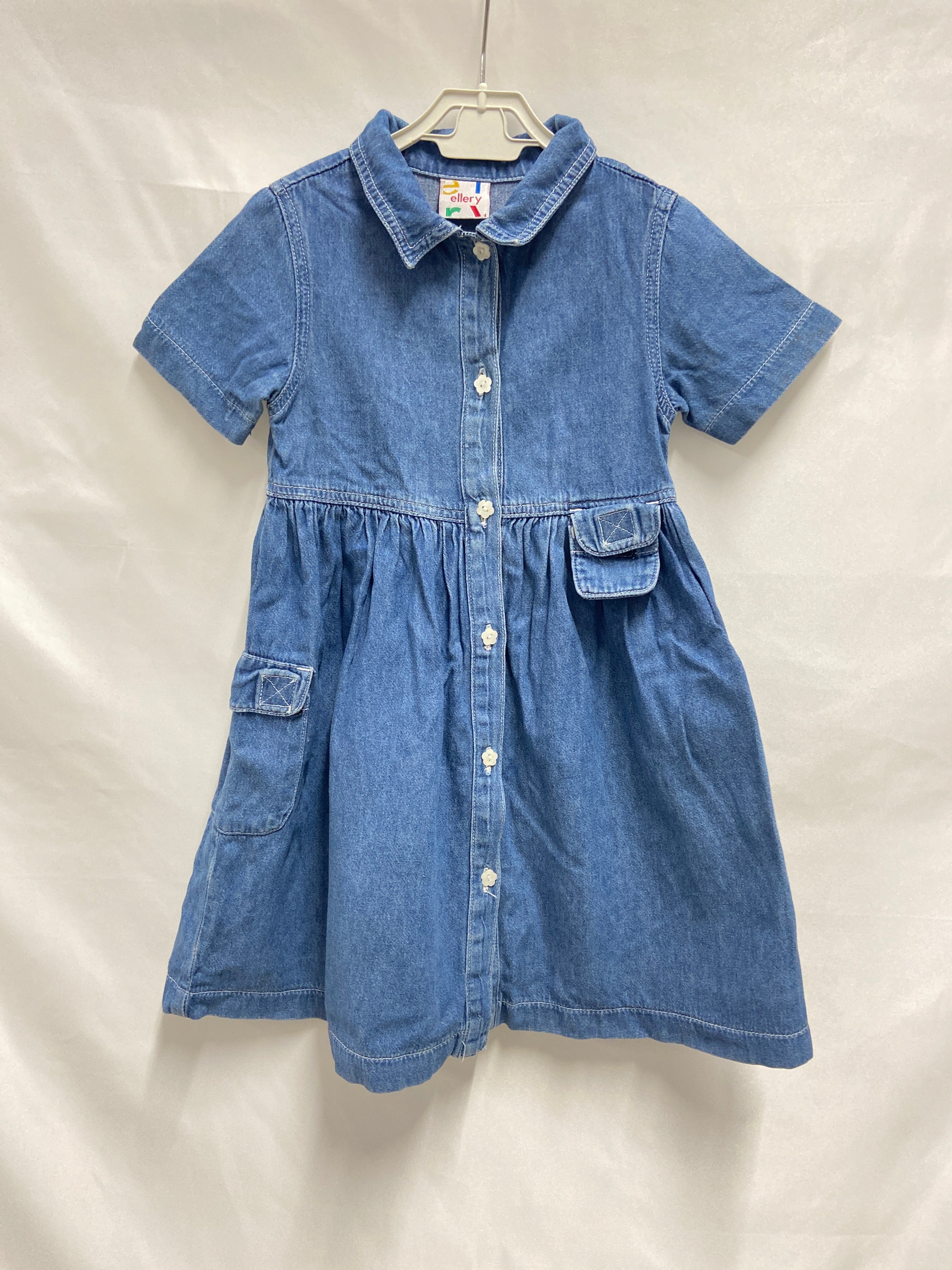 Questo adorabile vestitino in denim è perfetto per le piccole esploratrici! Con un design classico e chic, presenta un colletto raffinato e un'apertura frontale con bottoni, che aggiunge un tocco di eleganza. La cintura delicata in vita e le pratiche tasche frontali non solo lo rendono stiloso, ma anche funzionale per raccogliere tesori durante le avventure giornaliere. Nonostante sia un capo usato, si trova in ottime condizioni e porterà sicuramente un sorriso sul volto della tua bambina. Ideale per ogni occasione, che sia una giornata al parco o una festa!
