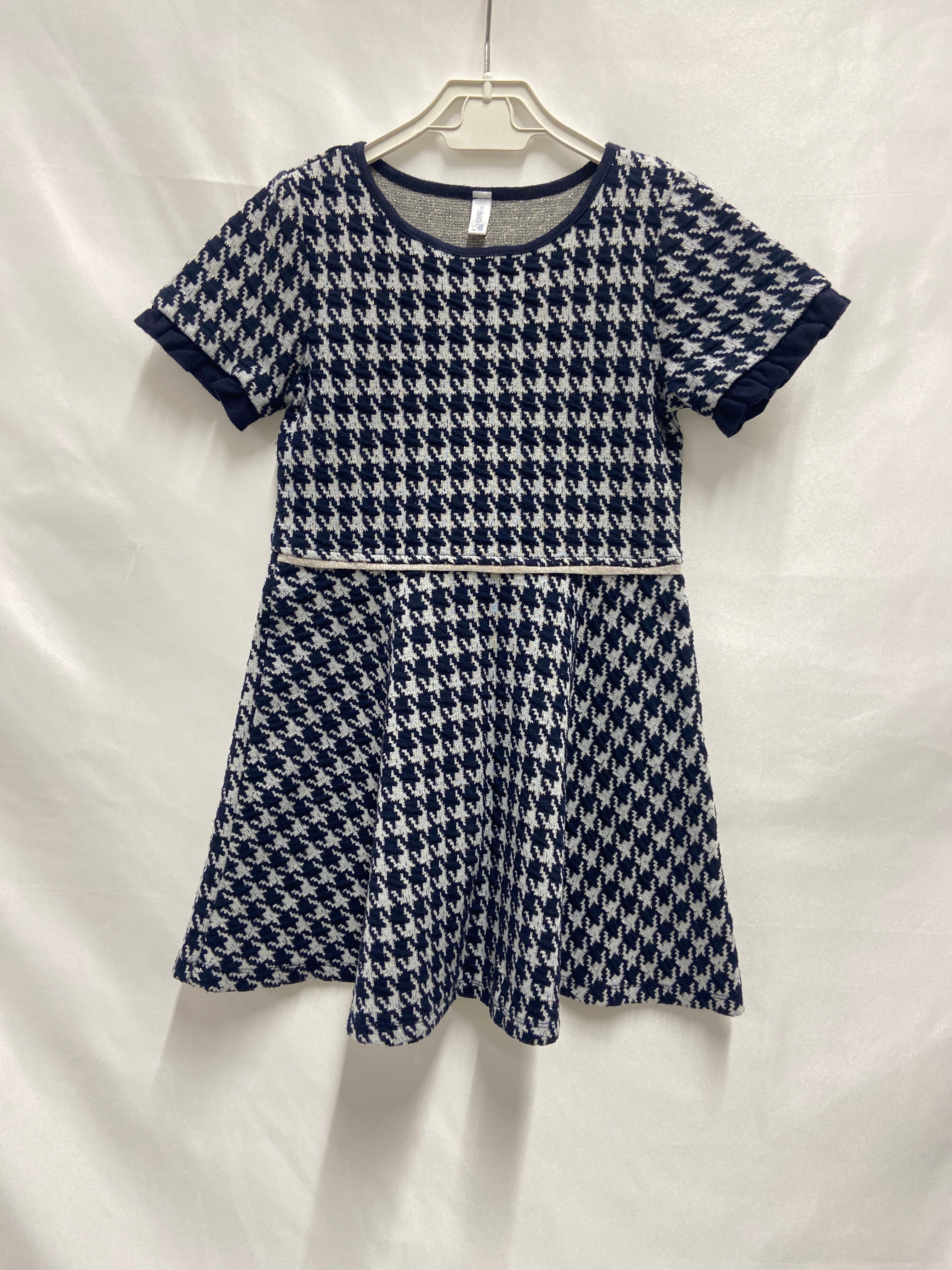 Questo adorabile vestito a trapezio presenta un elegante motivo a zig zag in un raffinato blu navy e bianco, perfetto per ogni occasioni speciali o per una giornata di gioco. Realizzato in morbido cotone che garantisce comfort e libertà di movimento, ha un bel taglio che valorizza la figura delle piccole. Le maniche corte e il delicato bordo blu sulle maniche danno un tocco di stile in più. Nonostante sia un capo usato, si trova in ottime condizioni, pronto a far brillare il guardaroba di qualsiasi piccola fashionista! Un cuore da addobbare con accessori colorati per un look impeccabile!
