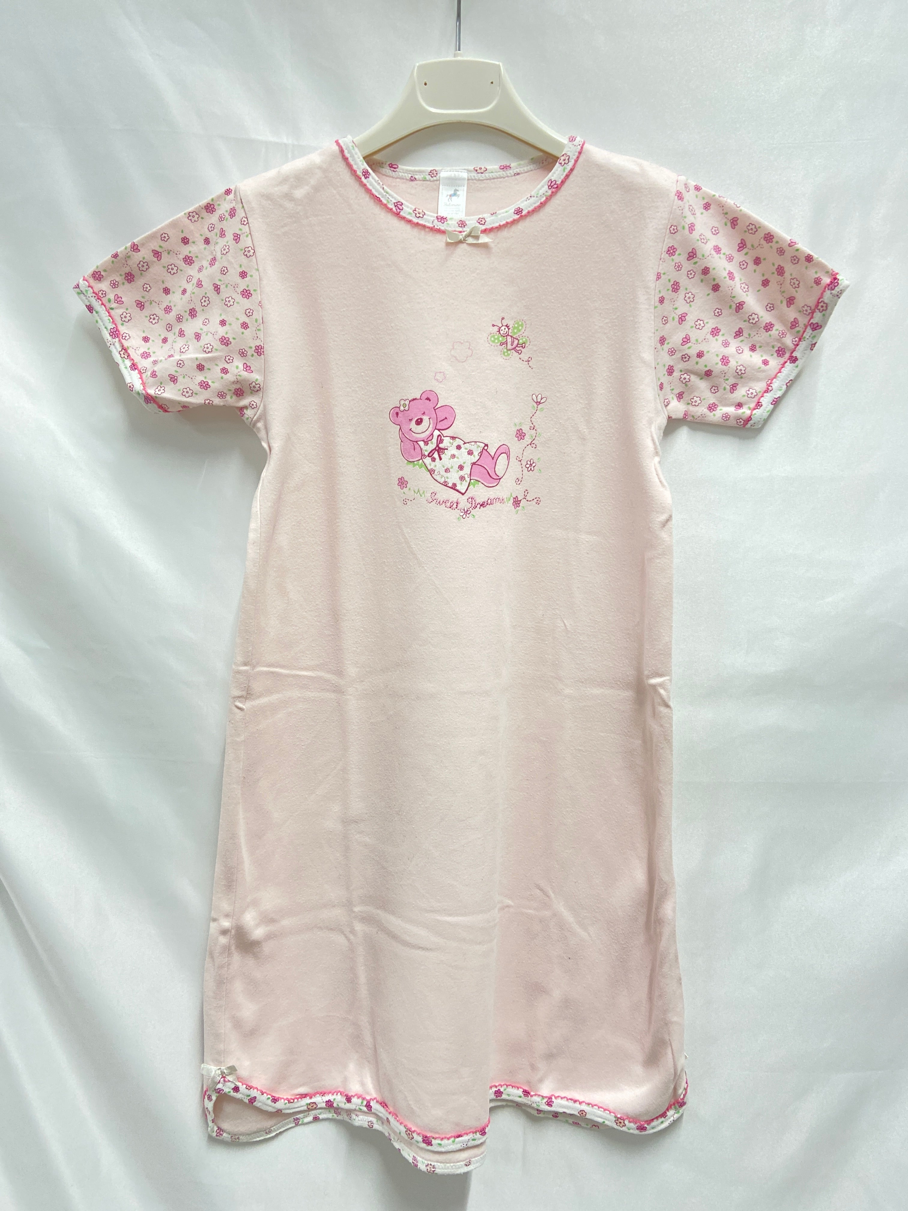 Questo adorabile pigiamino da bambina è perfetto per sogni incantevoli! Realizzato in morbido cotone rosa, presenta deliziose maniche a contrasto decorate con fiori che portano un tocco di primavera. Sul fronte, un tenero orsetto e la scritta "Sweet dreams" incanteranno la tua piccola. La vestibilità comoda e il taglio leggero lo rendono ideale per notti tranquille e giochi serali. Nonostante sia usato, si presenta in ottime condizioni. Perfetto per le piccole sognatrici che amano la dolcezza anche nel momento del riposo!