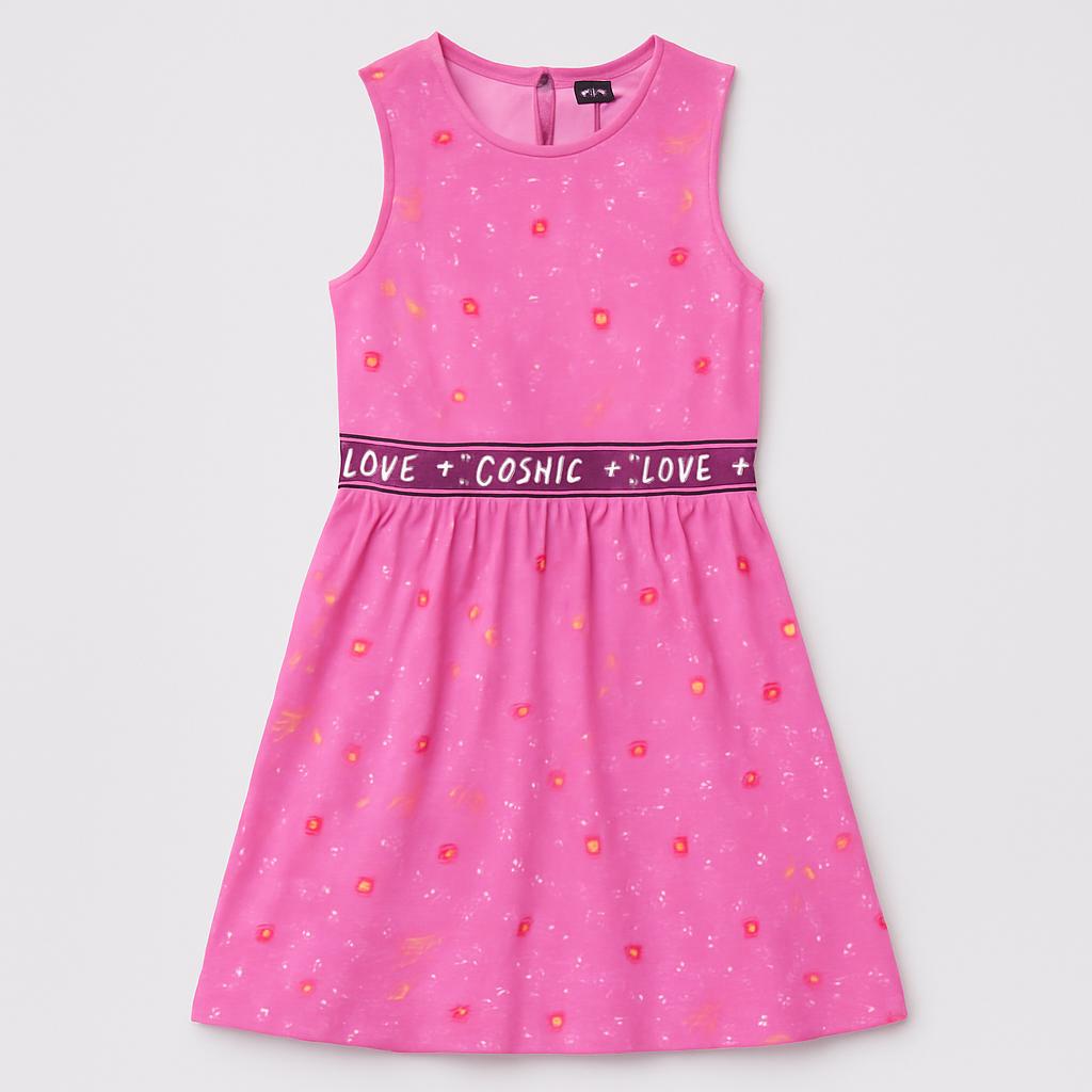 Questo incantevole vestito senza maniche è l'accessorio perfetto per le piccole stelle! Con un vivace colore rosa e decorazioni di deliziosi gelati e stelle, cattura immediatamente l'attenzione. La vita è definita da un elastico con la scritta "LOVE COSMIC", aggiungendo un tocco trendy e giocoso. Ideale per feste estive, picnic o semplici avventure nel parco, questo vestito garantisce comfort e stile. In ottime condizioni nonostante l'uso, sarà la scelta perfetta per una piccola sognatrice che ama brillare!