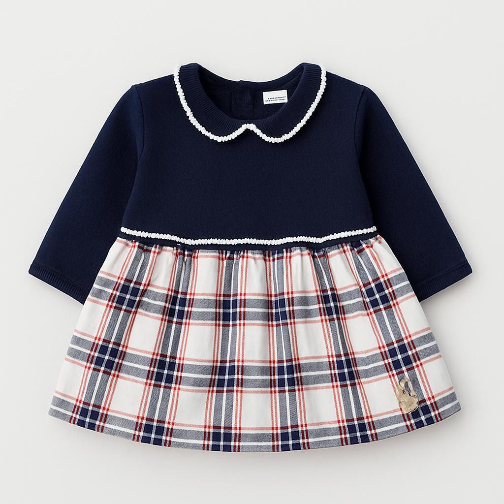 Questo adorabile vestitino a righe è perfetto per le piccole esploratrici! La parte superiore in maglia blu scuro è abbellita da un colletto bianco, mentre la gonna a quadri rossi, bianchi e blu porta un tocco di freschezza. Con i suoi dettagli graziosi, questo abito unisce comfort e stile, ideale per una giornata di giochi o un’uscita speciale. Anche se ha già avuto una storia, si presenta in ottime condizioni, pronto a regalare un sorriso alla tua bambina! Un capo intramontabile da aggiungere al suo guardaroba.