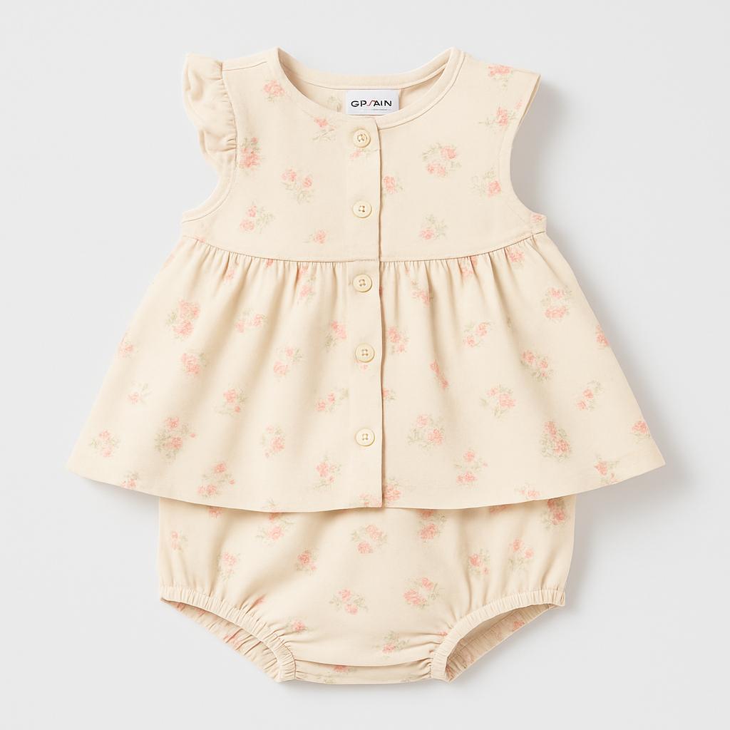 Questo adorabile completino per bambini è l'ideale per le piccole amanti della primavera! Realizzato in morbido cotone, presenta una dolce fantasia floreale su fondo crema che conferirà un tocco di freschezza e gioia ai look quotidiani. La parte superiore ha un delicato design con rouches, mentre i pantaloni coordinati offrono comfort e libertà di movimento. Perfetto per ogni occasione, da una passeggiata al parco a una festa di compleanno, questo outfit usato è in ottime condizioni e pronto a far brillare il guardaroba della tua bimba! Un must-have per le piccole fashioniste!