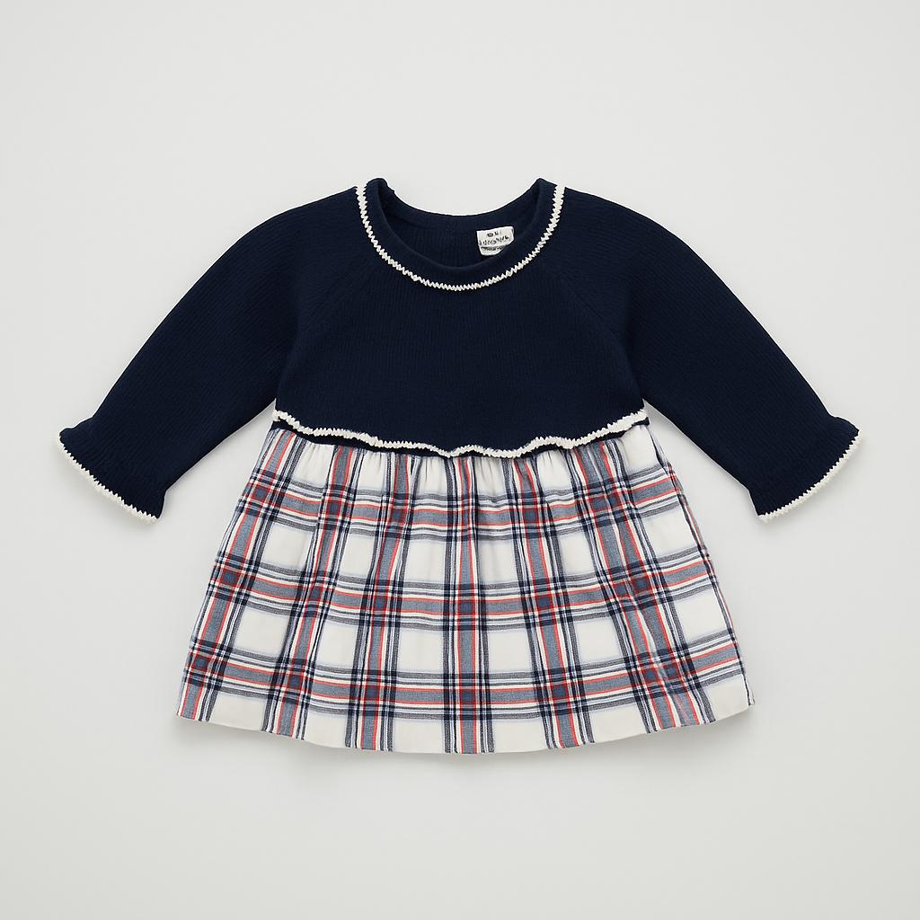 Questo adorabile abito combina il calore e lo stile in un unico pezzo! La parte superiore in pregiato punto maglia blu scuro è accompagnata da una vivace gonna a quadri in bianco e rosso, perfetta per le occasioni speciali o per una passeggiata nel parco. Con maniche a campana e rifiniture delicate, questo abito è comodissimo da indossare, mantenendo sempre un tocco di eleganza. Nonostante sia un capo usato, si presenta in ottime condizioni, ideale per le piccole che adorano esprimere la loro personalità! Un abito che unisce comfort e stile, perfetto per la moda infantile!