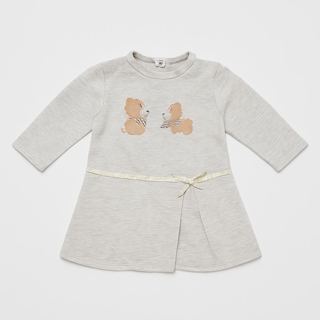 Questo adorabile vestitino grigio chiaro è perfetto per rendere uniche le giornate della tua piccola! Realizzato in morbido cotone, offre comfort e freschezza. La parte frontale è decorata con teneri coniglietti ricamati, che aggiungono un tocco di dolcezza al look. Le maniche lunghe e il taglio a ruota garantiscono libertà di movimento, ideale per correre e giocare. Un delizioso nastro in vita completa l’outfit, donando un’applicazione chic e graziosa. Nonostante sia un capo usato, è in ottime condizioni e pronto a far brillare il guardaroba delle piccole esploratrici!