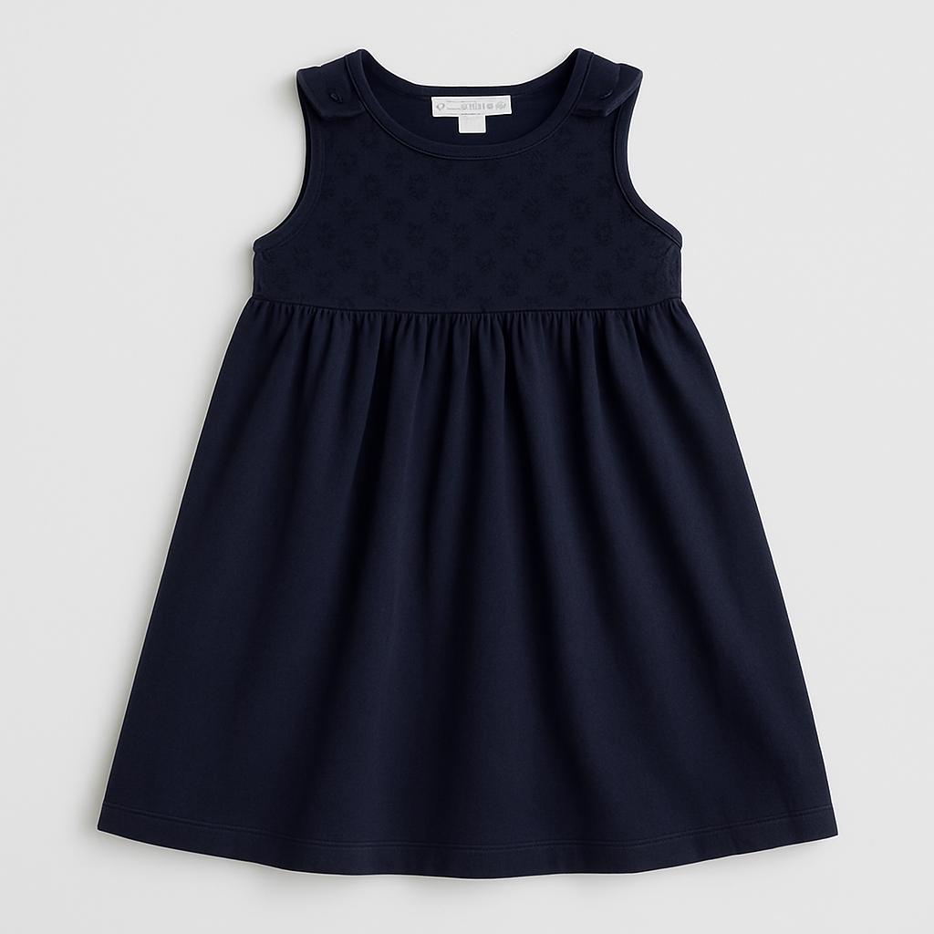 Questo adorabile abitino blu scuro è perfetto per le piccole principesse! Realizzato in cotone morbido, offre una vestibilità comoda e fresca, ideale per le giornate primaverili e estive. La parte superiore, embellita con dettagli testurizzati, aggiunge un tocco di eleganza, mentre la gonna ampia permette libertà di movimento per giocare e divertirsi. Nonostante sia un capo usato, si presenta in ottime condizioni, pronto per illuminare il guardaroba della tua bambina. Un must-have per ogni occasione!