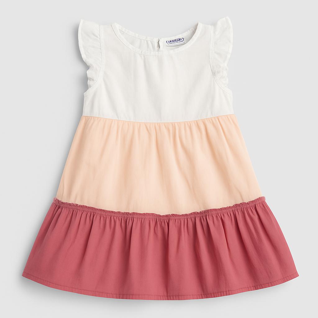 Questo adorabile vestito per bambina è un vero sogno! Con la sua leggera fantasia bicolore, combina un delicato bianco nella parte superiore con una gradazione di pesco e rosa che crea un gioco di tonalità dolcissime. Le maniche a volant aggiungono un tocco di freschezza e femminilità, ideale per le piccole principesse. La gonna ampia offre libertà di movimento, perfetta per ballare e giocare in piena libertà. Nonostante sia un capo usato, è ben conservato e pronto a regalare nuove avventure! Un must-have per i look estivi!